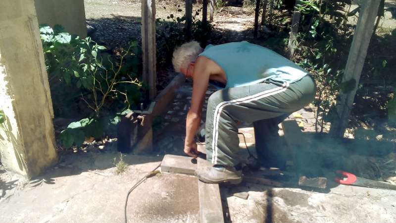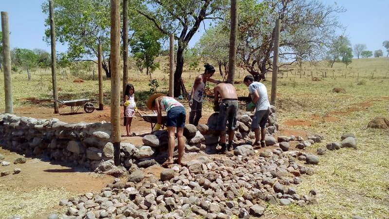 S: Claro, amigo! Hoje completamos 11 dias de trabalho, naquele regime que lhe falei: meio horário bem trabalhado. Ontem quase terminamos a mureta de pedra, que será a base para a parede de pau-a-pique. O Fernando, lembra dele?... não perde tempo. Já está cortando as madeiras que estamos reciclando para fazer os batentes das janelas e portas.